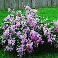 I love this one....blooms continuously during the summer with a nice shade of orchid. Fills in to the ground so makes a nice round shape. I have never trimmed mine; they haven't needed it. However, here in the Houston area, this plant has grown considerably larger than the posted sizes. Mine is almost 4' tall and wide.