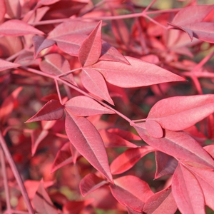Buy Heavenly Bamboo Nandina online. Attractive evergreen shrub with upright stems and heavily divided foliage. Colors from green to red and red berries in autumn throughout winter.